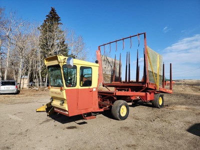 1973 New Holland Super 1049 Stackcruiser Self Propelled Gas Bale Wagon, 1737 hours showing 5 speed, 391c.i. gas motor, 36x16-17.5 front rubber (New), 40x19-19.5 rear rubber. Hours won't be correct. s/n: 2002 |