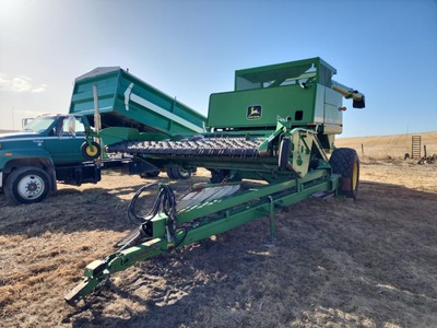 John Deere 7721 TITAN II Pull Type Combine 1000 PTO, new plastic sieve last year (olds sieve will go with), Goodyear 23.1-26 rubber, field ready. s/n: H07721X620548. |