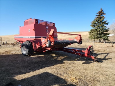 International 1482 Axial Flow Pull Type Combine with Melroe 388 Pickup 1000 PTO, Goodyear 28L-26 Rubber, field ready. s/n: 1420011U010090 |