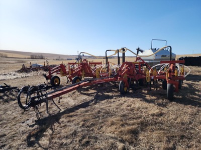 1996 Bourgault 8800 24' Seeding Tool w/ Bourgault 2130 SPECIAL Air Tank 2 compartment, approx 130 bu front tank and 80 bu rear tank, tool is approx 8" spacing with rear packers and also rear harrows, field ready. Whole pallet of extra shovels, hoses, and other parts. Tank s/n: 6654, tool s/n: 1104-5 |