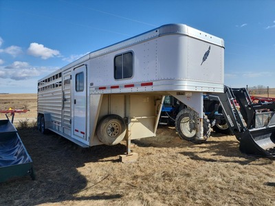 2014 Featherlite 24' Tandem Axle Gooseneck Aluminum Stock/Combo Trailer, s/n: 4FGB12427EC133450 Model 8413-7024 STD. (2) 7000lb axles, front tack room with 4 saddle rack and hooks etc (clean clean), rubber mats and divider gate, 7' wide, 7' tall. |