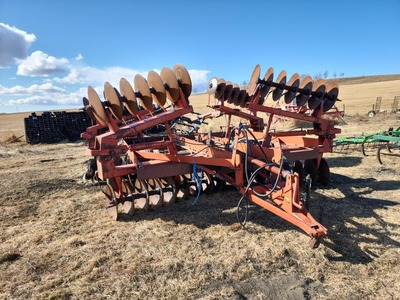 International 485 24' Tandem Disc Heavy Duty, 22'' blades, with Morries 4 bar mounted harrows. s/n: 0470000UD11764 |