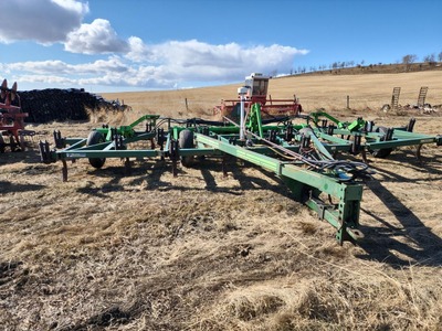 1996 Co-op Implements 25' Chisel Plow w/ Flexicoil 4 bar mounted harrows with hydraulics to the rear and rear hitch, pallet of parts to sell with as well. s/n: 6600900021 |