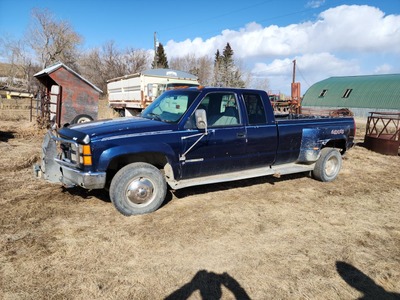 1995 GMC 3500 Sierra SL Extended Cab Dually Diesel 4x4 Truck, sn: 1GTHK39F5SE533702 6.5L Diesel Motor, WARN 9,000lb winch, 347,780 kms, 5th wheel rails with gooseneck ball plate in box. |